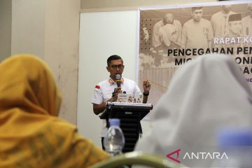 Kepala BP3MI Riau Fanny Wahyu Kurniawan memberikan keterangan jumlah kasus perdagangan orang (TPPO) kepada peserta Rapat Koordinator Terbatas (Rakortas) pencegahan PMI ilegal dan TPPO di Dumai, Riau, Kamis (11/9/2025). Dalam rakor yang dihadiri oleh perwakilan instansi pemerintah pusat dan daerah tersebut disampaikan juga jumlah kasus TPPO di Riau hingga September sebanyak 127 kasus dengan jumlah korban sebanyak 599 orang yang berhasil diselamatkan dan tiga daerah tujuan pemulangan terbanyak yaitu Sumut, Jatim serta Aceh. ANTARA/Aswaddy Hamid